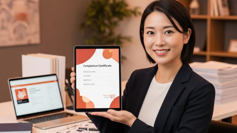 プログラム修了後、証明書を発行。受講記録はシステムで適切に保管されます。